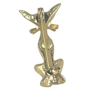 This elegant vintage brooch features the iconic Wile E. Coyote in a sleek gold-tone finish. Its playful design captures his mischievous charm, providing a unique statement piece for collectors or lovers of classic animation memorabilia. The pin-back closure ensures secure attachment, making it both functional and stylish.