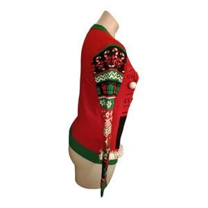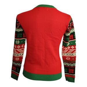 In excellent pre-owned condition please review the photos measurements are in them. The Cat Santa Mugshot Knocked Over The Tree No Bo Christmas Sweater in Women's Size Small is a colorful and festive pullover sweater from No Boundaries. Featuring long sleeves and a knit fabric type, this sweater is perfect for the holiday season. The multicolor design with garland accents adds a touch of whimsy and fun to any Christmas outfit. This sweater is a unique and fun addition to any woman's wardrobe during the holiday season.