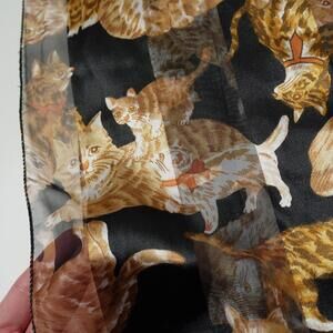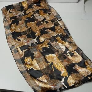 Cat Scarf Black Orange Gold Sheer Cats Kittens Quirky Gift Twee Whimsical Wrap Made in Korea Gma Core grandma novelty animals