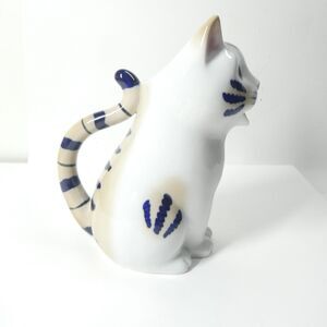 Cat Shaped Pitcher Figural Henriksen Imports Japan Vintage White Blue
