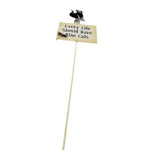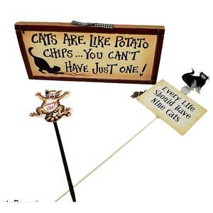 -Accents/Features: Lot Includes: Wooden Rustic Sign-Can Sit on Shelf or be made to hang-Measures appx 11 3/4" x 5 1/2" x 3/4"-An Every Life Should Have Nine Cats Yard/Garden Stick and has a Springy Cat on top and a mouse hanging below-Measures Appx 26 3/4" T-A Scardy Cat Plant Poke Stick-Measures Appx 11" T-Please see All Photos