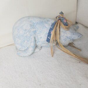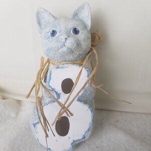 Cat Sitting On Shelf Looking Down vtg Ceramic blue with blue accents collar
