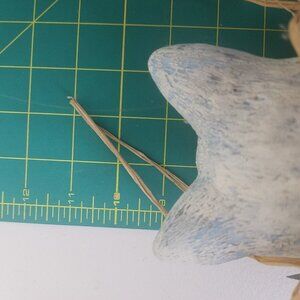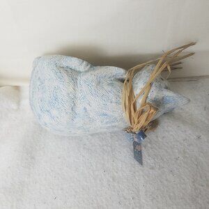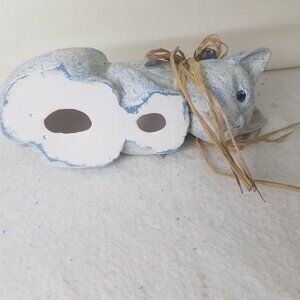 This vintage ceramic cat figurine features a unique design of a cat sitting on a shelf and looking down, with blue accents on the collar. The collectible piece is made of ceramic, adding a touch of elegance and charm to any space. Perfect for cat lovers or collectors of animal figurines, this vintage ceramic cat is sure to be a standout addition to any collection.