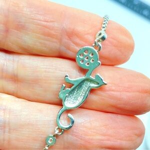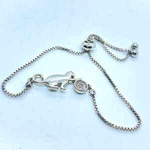 Cat Slider Bracelet Silver Tone Stainless Steel Cat with Rhinestone Yarn Ball