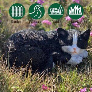 Furry Feline with Realistic Color: Sculpted with realistic fur from pointed ears to paws with kitty claws, our black/white cat lawn statue is so adorable in addition to your yard or garden. It is a good ornamental choice for your lawn, patio or garden