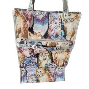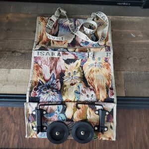 Cat Tapestry Luggage Carry On Shopping Bag & Wheels Vintage Cat Lady Collapsible