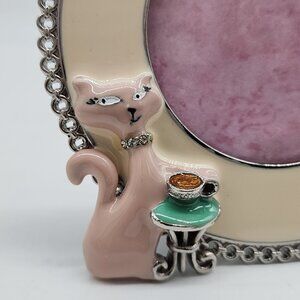 Cat Themed Round Photo Frame With Rhinestone Accents & Cream Enamel Finish