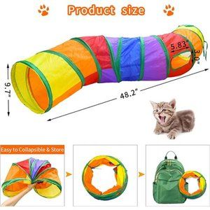 🧿【Upgraded Cat Tunnel】Our cat tube tunnel is made of tear-resistant polyester and memory steel frame, strong and not easily deformed. With two peek holes, that allows your pet to look around while still feeling safe and concealed. Great for adult cat or kitty, puppy, rabbits and other small pets. A ball can be hung in the tunnel exit to increase the fun of the cat.