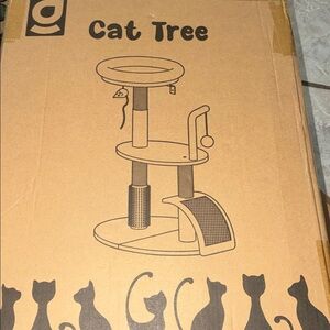 Stylish cat tree with multiple levels and scratching post. Perfect for playful cats.