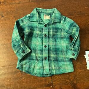 Cat and Jack Boys Flannel Button Down Shirt Size 12 Months Green NEW Soft Warm