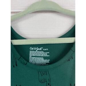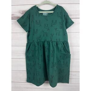 Cat and Jack Girls Dress Green Deer Short Sleeve Knee Length Pockets S 6/7