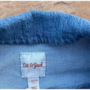 This Cat and Jack Girls Jean Jacket is the perfect addition to your little girl's wardrobe. Made with a cotton outer shell and a 100% cotton lining, this jacket is both lightweight and comfortable. The jacket features a collared design, button closure, and button accents for a stylish touch. It's suitable for girls size L (10/12) and comes in a beautiful blue color that will complement any outfit.