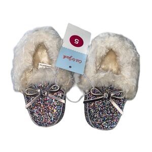 Cat and Jack Glitter Moccasins size 5 Toddler Multicolor bow Slipper Shoe