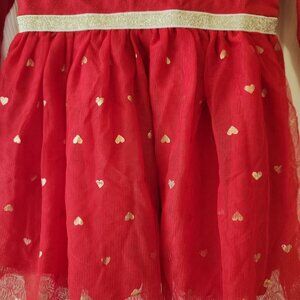 Cat and Jack Love Theme Red Long Sleeve Dress Glitter Print Hearts 2T