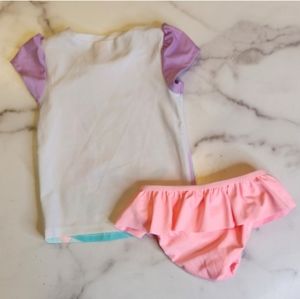 Brand new without tags! Baby girls’ rash guard set includes short-sleeve rash guard and swim briefs. Girls’ swimsuit made with UPF 50+ material provides excellent sun protection. Swimwear separates can be mixed and matched for more outfit options