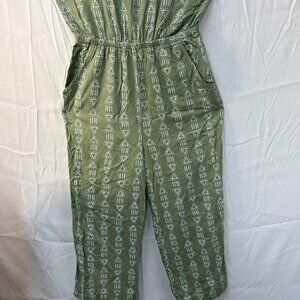 Cat and Jack Romper preteen Large 10/12, sage with Amazonian designs