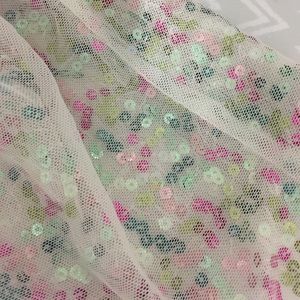 Your little girl will love this skirt! Ivory skirt with pink, fuschia, teal, and green sequins. Gold band adds more flair. Perfect condition. Worn once for pictures.