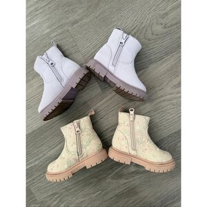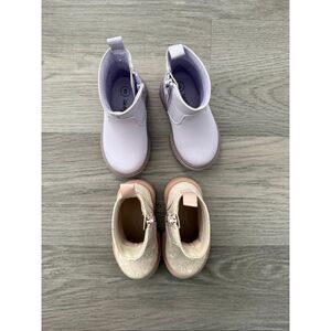 Cat and Jack toddler girl size 5 boot bundle - lavender purple & light pink floral. Side zipper. Both in great preowned condition, the purple one has a tiny fabric nick shown in last photo.