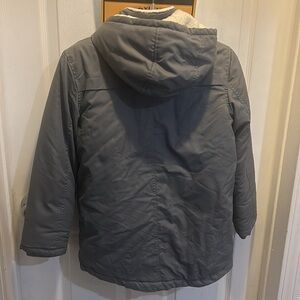 Girl/neutral jacket. Size m/8/10. Sherpa inner. Gray. Zipper and Velcro closure
