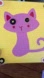 Funky quirky handpainted pink cat with black button eyes on a sunshine-y yellow background