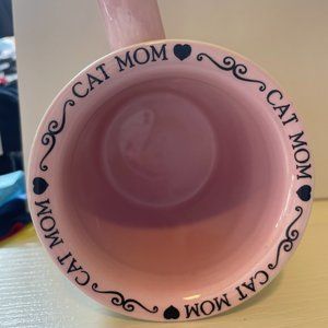 Cute ceramic mug w/one black cat, pink interior, "Cat Mom"
