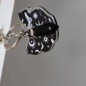 Cute cat head with designs keychain..Onyx is not a real crystal, just for looks