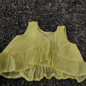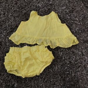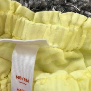 Very pretty bright yellow baby outfit tag say nb but my baby wore it a couple of times up to about 6 months so it has some stretch to it still in wonderful condition