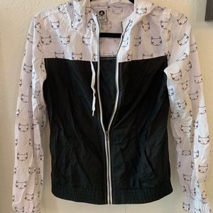 Two toned zip up jacket. Top with white part has cats on it