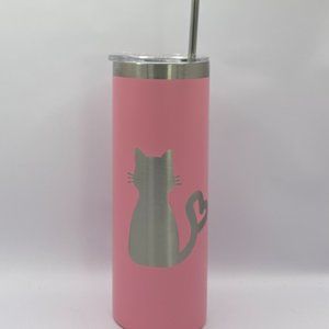 Cat kitten heart pink engraved 20 ounce skinny tumbler, cat mom, cat lover