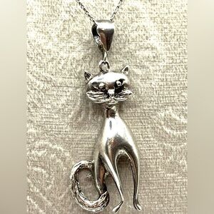 Sterling Silver Large Cat Pendant, Very Well Made. It measures about 2” including bale 3/4” wide see photos