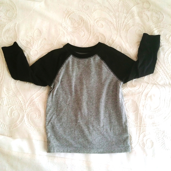 The fall transition tee for your toddler! Dark grey with contrast black raglan sleeves. Unisex. Size 18 months. VGUC.