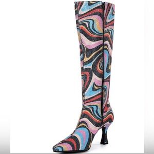 Cat-Walk Glitter Swirl Print Snip Toe Colorful Swirl Pattern Knee-High Boots NWT