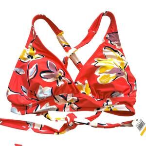 Catalina Bikini Set Red Floral Tie Top High Waisted Bottom Swimsuit Small NEW