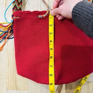 Feel the comfort of the soft crochet strap as it elegantly fits across your body, blending practicality with boho elegance. The pull-string closure ensures your essentials are secure, yet easily accessible.