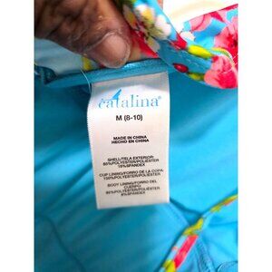 Catalina Halter Neck Floral Ruffle Bikini Top Size M 8-10 Blue/Multicolor Polyes
