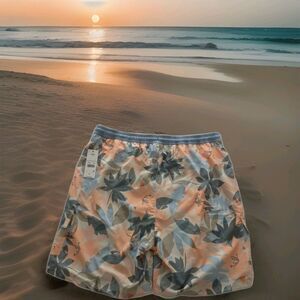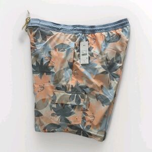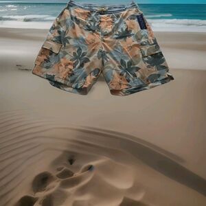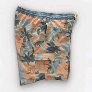 Catalina mens swim trunks, size XL. Comfortable design with elastic waistband and adjustable drawstring. Features convenient side pockets and mesh brief liner for added support. 8" inseam for a modern above-the-knee fit. Brown color. Perfect for the beach, pool, or outdoor activities.