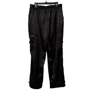Catalina Satin High Waisted Wide Leg Ankle Cinch Cargo Pants Black Large