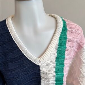 Catalina Small Navy V-Neck Sweater with Color-Block Design
