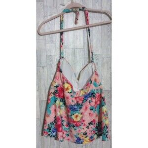 Catalina Swim Top Floral Built In Bra Multicolor Tie Neck Size 1X