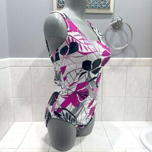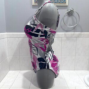 Catalina Swimsuit Med One Piece Floral Racer Back in Black / White & Purple NWT