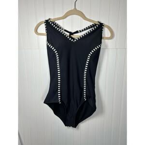 Catalina Swimwear Halter One Piece Swimsuit L 12 - 14 White Stripe