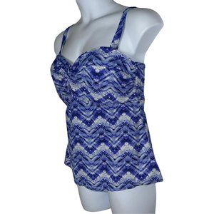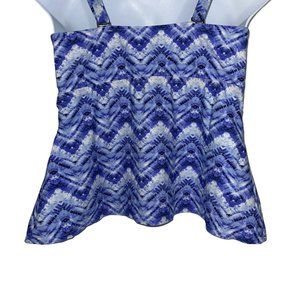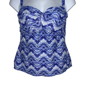 Catalina Tie Dye Zig Zag Blue Adjustable Tankini Swim Top Womens Plus Size 1X