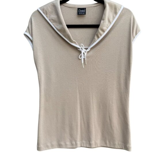 Catalina Vintage 60s 70s Womens Tan Sailor Collar Sleeveless Nautical Shirt L