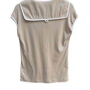 This sailor-inspired top offers a timeless design with a flattering fit. The beige hue and white trim enhance its nautical charm for a polished look.