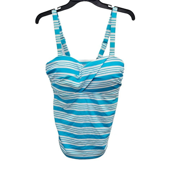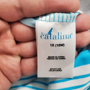Catalina Woman's Aqua White Stripe Built In Bra Swim Tankini NWT Plus Size 1X
