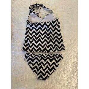 Catalina Womens 2 Piece Halter Top Black & White Size Medium Beach Pool Vacation