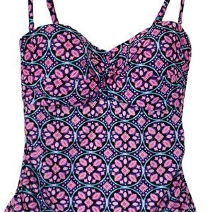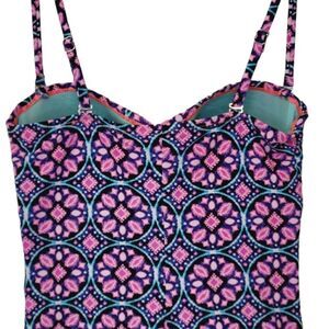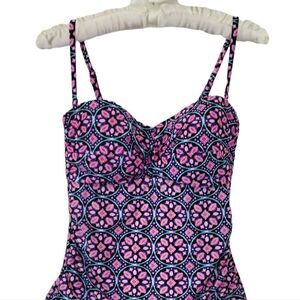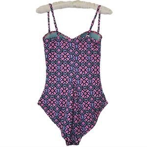 Catalina Pink Patterned Ruched Removable Strap One Piece Swimsuit Size S