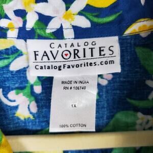 Catalog Favorites Blue Novelty Citrus Fruit Print Button Down Shirt Size 1X