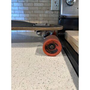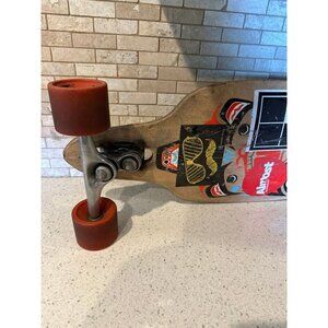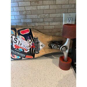 Catalyst longboard with gull wing trucks board has some wear and stickers all over the bottom wheel still spin good board is 39 inches long