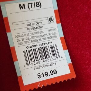 Size 7/8 pink polyester mesh tiered skirt with metallic and holographic round and flower shaped pailletes(sequin discs). Elastic waist, satin lining, knee length.